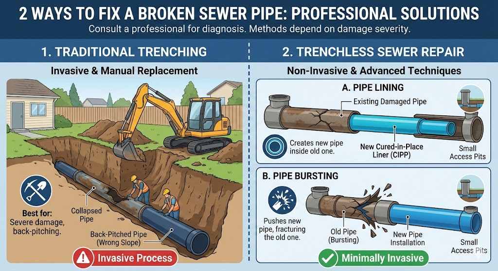 2 Ways To Fix A Broken Sewer Pipe